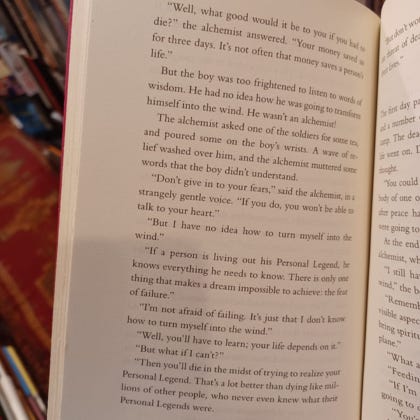 ‘“Don’t give in to your fears,” said the alchemist, in a strangely gentle voice. “If you do, you won’t be able to talk to your heart. […] If a person is living out his Personal Legend, he knows everything he needs to know. There is only one thing that makes a dream impossible to achieve: the fear of failure.”’’ Paulo Coelho, The Alchemist